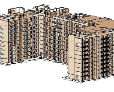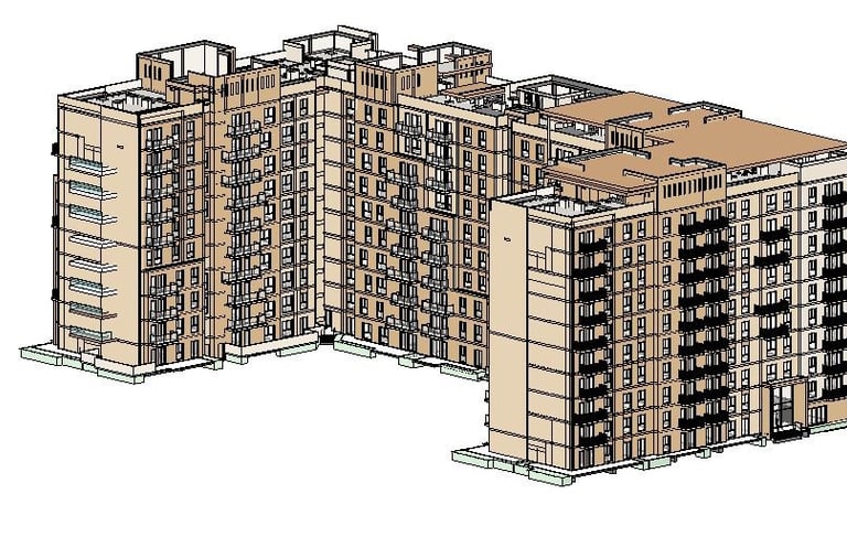 This project showcases a detailed high-rise residential complex developedentirely in Autodesk Revit. The model includes multiple towers withintegrated