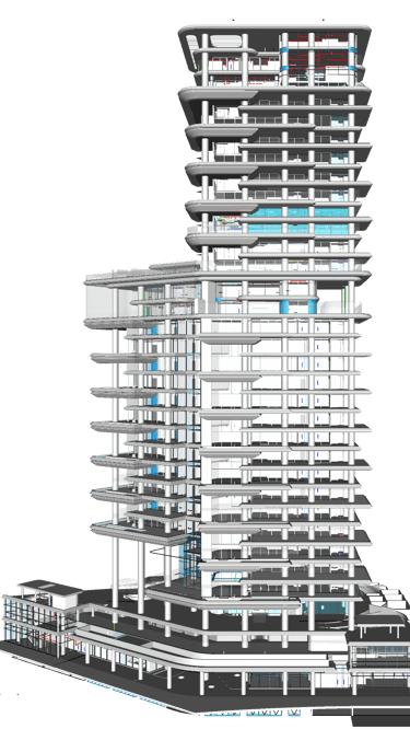 A luxury high-rise tower located in Business Bay, Dubai, designed with infinity pools on every floor to provide an unmatched living experience.Our scope covered Architecture, Structure, and MEP modeling at LOD 300, delivering a fully coordinated Revit model ensuring seamless design integration and precision in execution