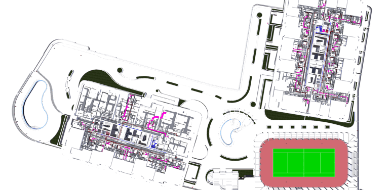 Scope: Comprehensive BIM modeling and coordination for two main facilities — the Data Center Building and Admin Office Block. The scope included detailed MEP design integration, clash detection, and coordination with architectural and structural disciplines to ensure seamless constructability and accurate service routing across the facility.